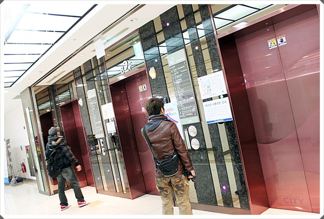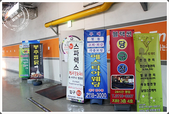 | 東大門的汗蒸幕滿多的,我們今天來的是場地比較大的,位於百貨的地下室,先要坐電梯下樓。 |