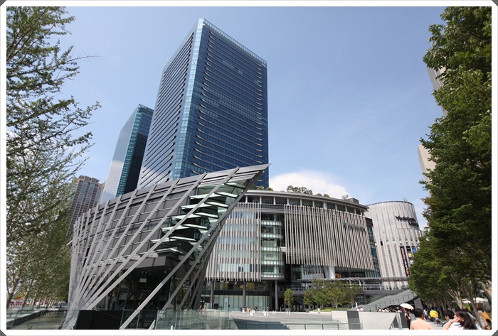 | 這半圓形的建築就是GRAND FRONT OSAKA的地標了,這邊逛街的人潮也非常多,也引進很多歐美的品牌。 |
