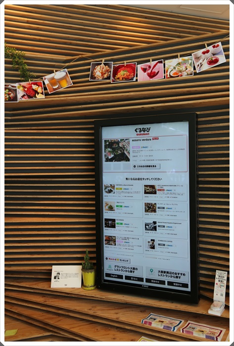 | 一旁還有一個液晶觸控的大銀幕可以查詢美食,當然要先查詢一下GRAND FRONT OSAKA有引進了哪些美食了。 |