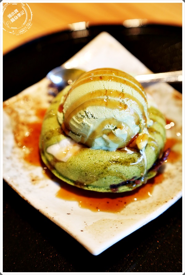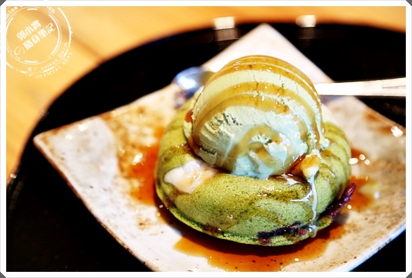 剛炸好的甜甜圈上面在加上一求抹茶冰淇淋,看起來就很好吃了,