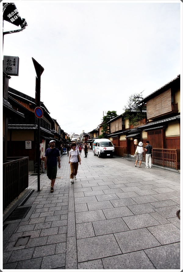 花見小路的路面比較寬廣,所以汽車也可以出入,造成人車爭道也是有一點困擾。