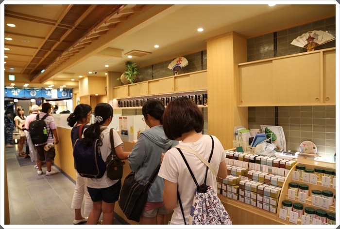 百年老店的祇園辻利果然是火紅的很,每次來幾乎都是大排長龍的隊伍,尤其在暑假期間來的話更是一位難求,但是基本款的抹茶冰淇淋跟奶昔都獲得我們兩個認同的高分數,對魚抹茶其實小寶的研究也沒有很深,因為我只是個愛吃的人XD