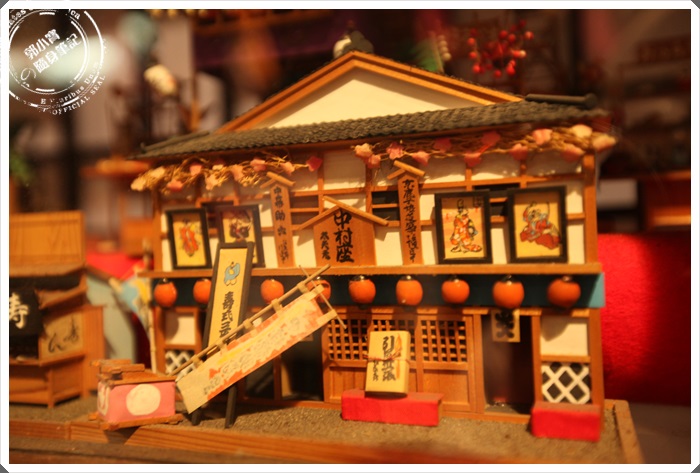 玻璃牆內的紙雕建築物。