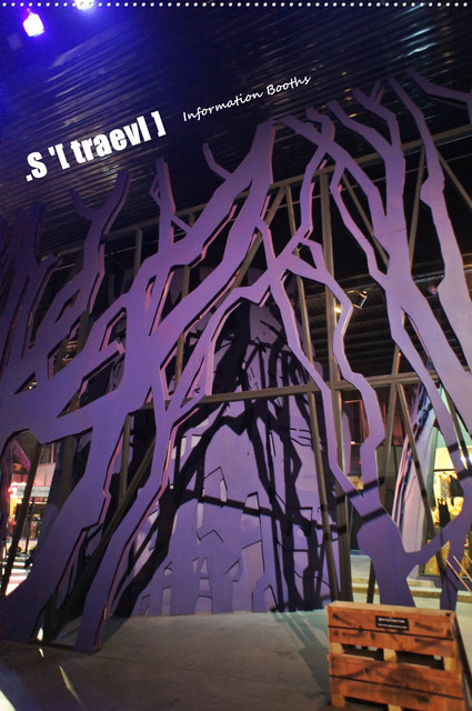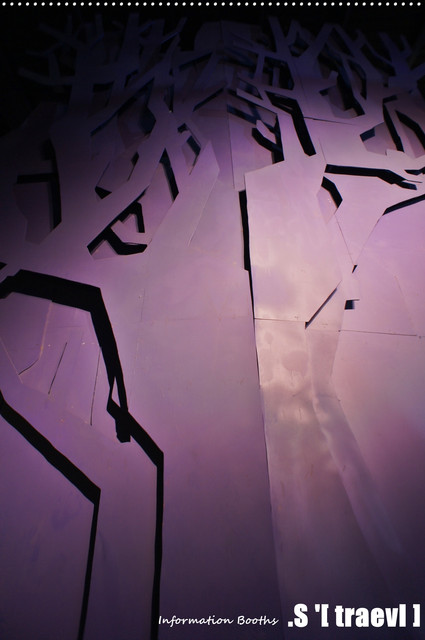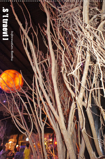 夜晚的時候燈光的陰影.門口有個很大的鬼手.外面的牆上也有很多枯木的造型圍繞著...