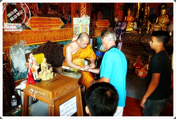 | 其他殿堂均有師傅幫人祈福,跪拜後師傅會發祈福過的白線,