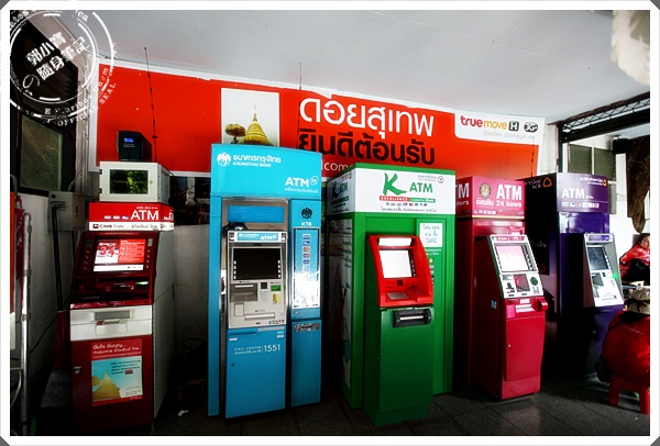 在清邁這個地方讓我最好奇的就是,每次看到提款機都是這樣的五台五色並列再一起,