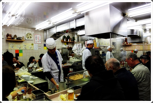 我們被分配在最裡面的位子,八重勝串炸店的位子全部都是吧台前,