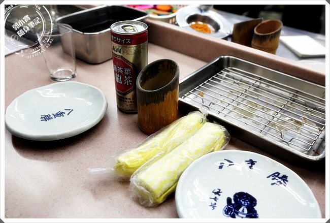 一入座的時候,服務人員就會把盤子跟毛巾送到桌上,盤子上面印有八重勝的字樣。