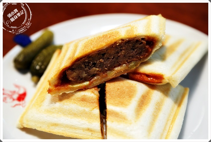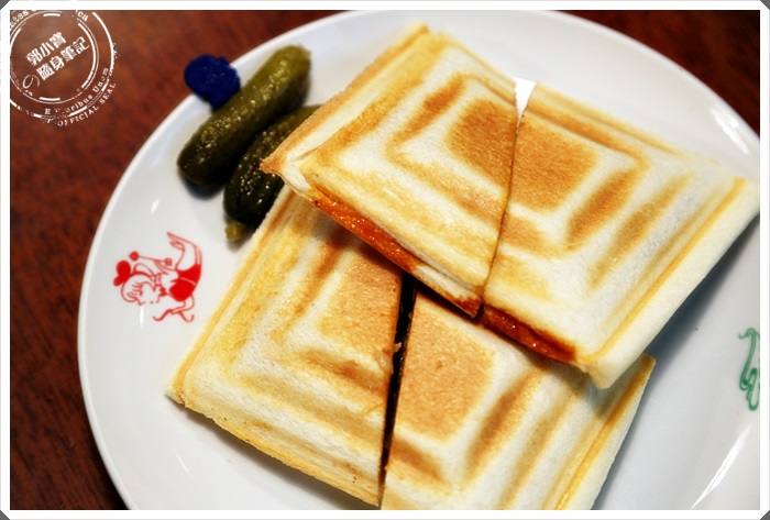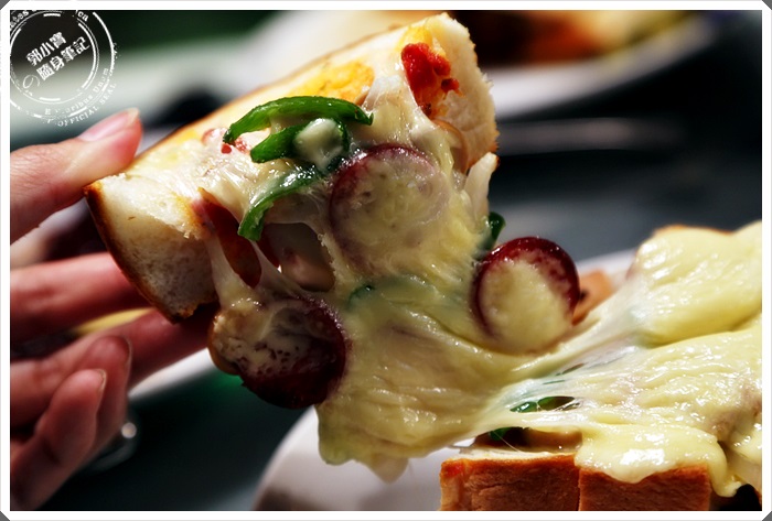 中間有放伊些臘腸肉跟青椒,厚實的土司入口滿有嚼勁的。 |
