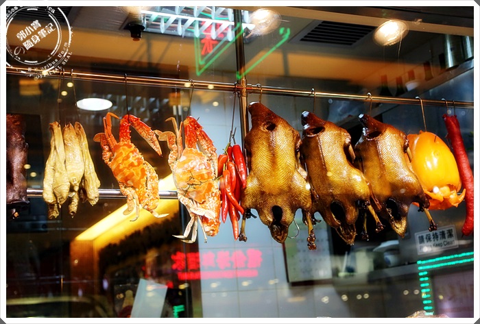 櫥窗上掛著除了一般香港常見的燒鵝以外,還掛了招牌螃蟹XD