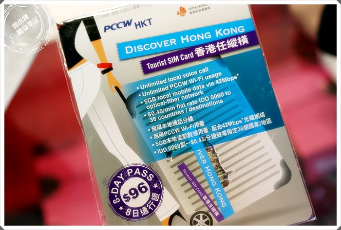 我們選了很久以後,選了一個最簡單又輕鬆的卡,就是這一張96港幣的SIM卡,