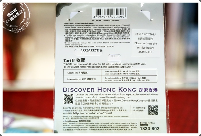 所以我還滿推薦這個牌子的,網路跟香港本地電話都無限使用,