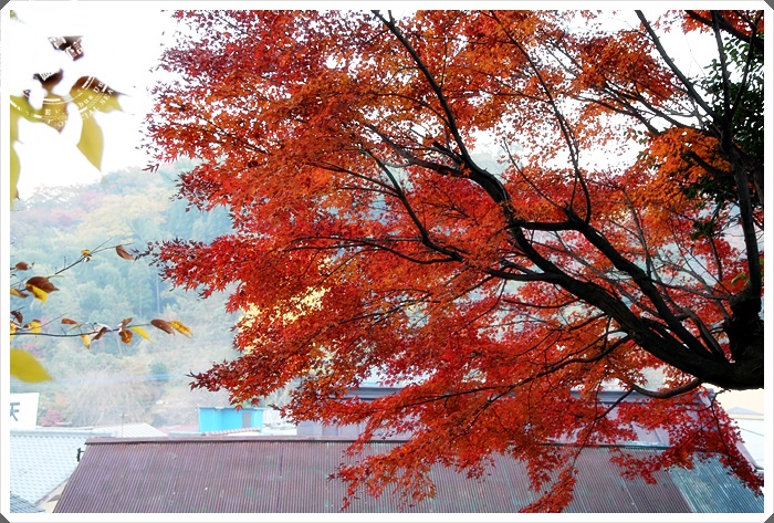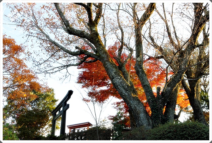 搭配著一旁的紅葉火紅著,還滿美麗的。 |