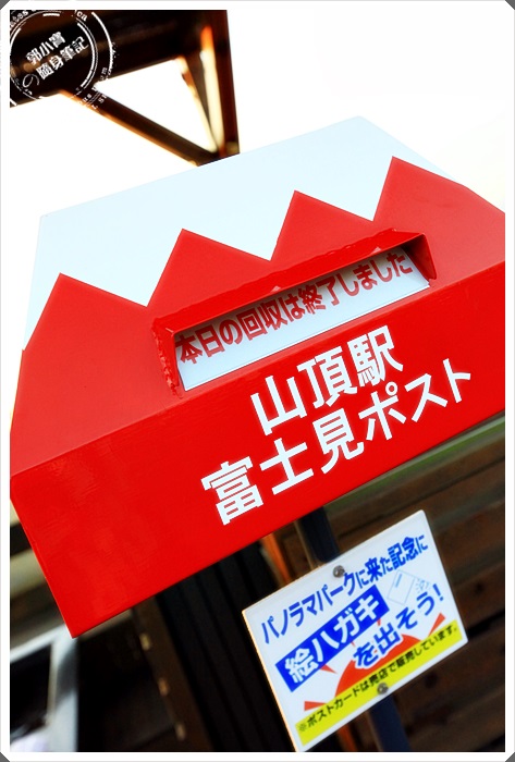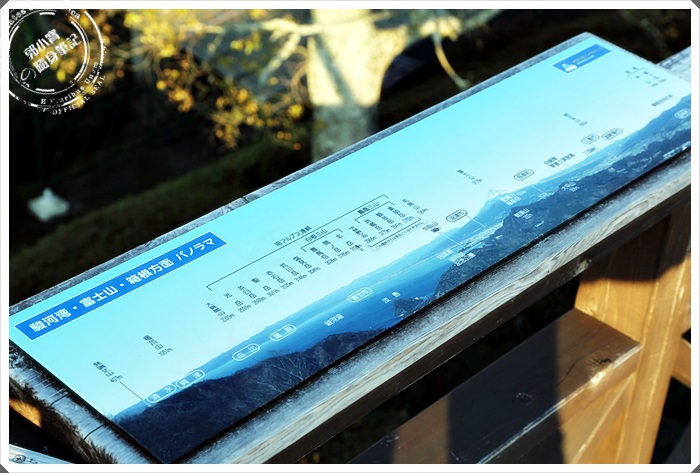 欄杆上有個指標是指往富士山的地方,往前看的話就是富士山了