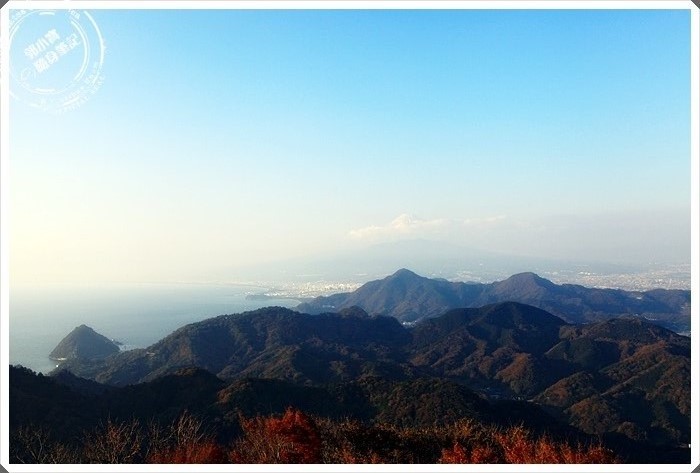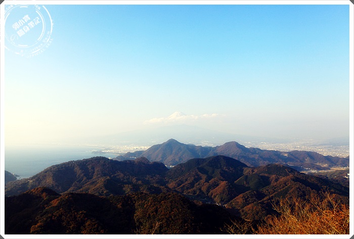 往指標的方向看去就可以隱約看到富士山,左邊是駿河灣,
