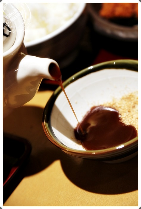 磨好粉後再把豬排醬倒進去,就是美味可口的豬排醬,かつ榮的豬排醬吃起來偏酸,甜中帶酸。