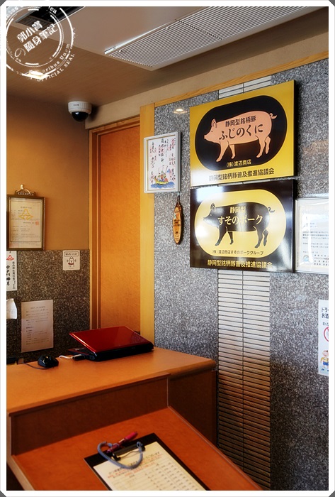 | 門口就放了兩個大大的牌子,講明了店內使用的都是靜岡豬,分別是兩個產地的樣子,大概是靜岡最有名的兩個品牌豬種,中途出來抽菸的時候拍的,看到領台上面的表格,後面大概也已經排了一堆人了,表單上面密密麻麻的。 |