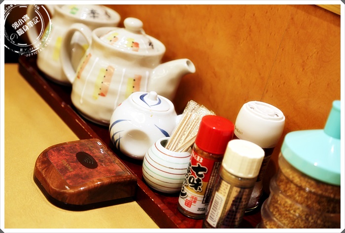 | 桌上準備的調味品還滿多的,在豬排店裡面かつ榮的算是很多調味料了。 |