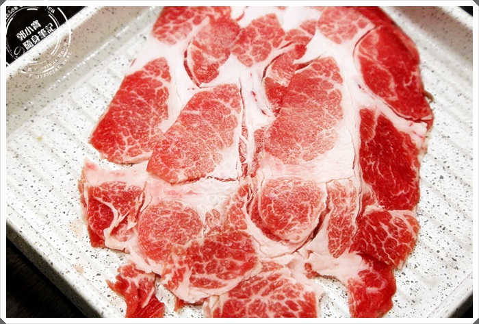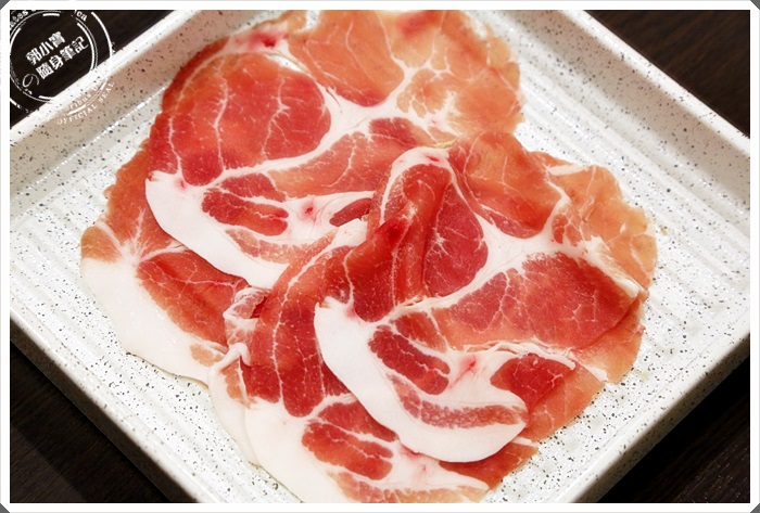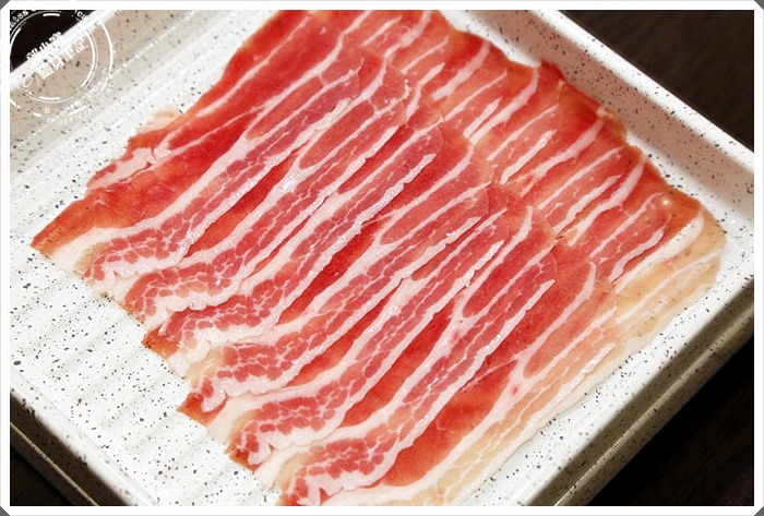 雖然我看起來每一盤的豬肉都不太一樣,菜單上面寫兩種豬的部分,但是很多盤的肉看起來油花都不太一樣,應該說連型狀都不太一樣,有些肉看起來也很像牛肉,所以我也有一點被搞混XD