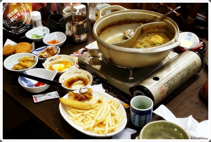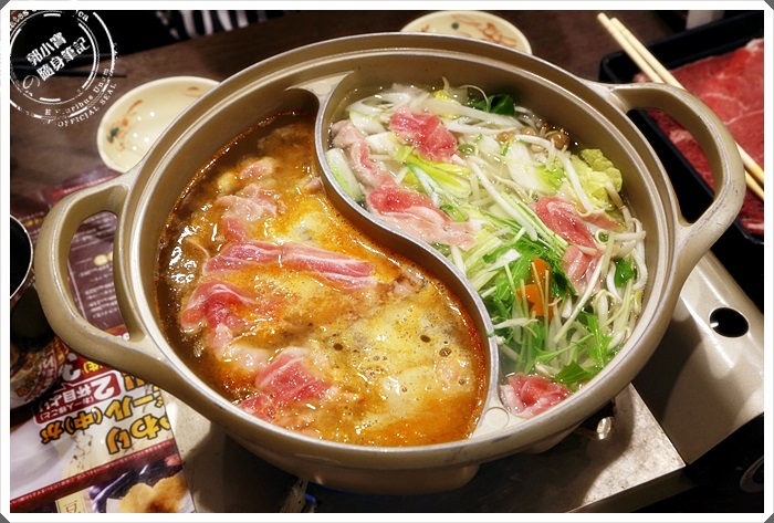 | 就這樣這鴛鴦鍋瞬間被我們塞滿了滿滿的食材了,基本上日本人的食量大部分都不大,所以我們兩個人的實力算是可以讓日本人驚訝到了XD |