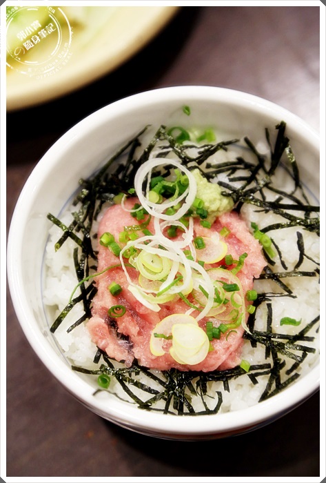 有提供四種井類,但是怕點太多種類的飯一下子就飽了,所以就點了一份生魚丼來看看,其實丼類不是一般的尺寸,是比較小的尺寸,看起來相當的可愛,上面的魚肉是有一點打成泥的感覺,入口卻也是新鮮美味。 |