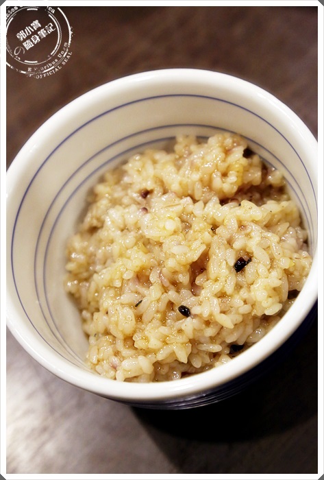 | 吃到最後的時候,店家幫我們開始收拾前,幫我們送來了一大碗的芝麻紫米飯,看樣子就是要讓我們做雜炊了。 |