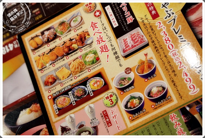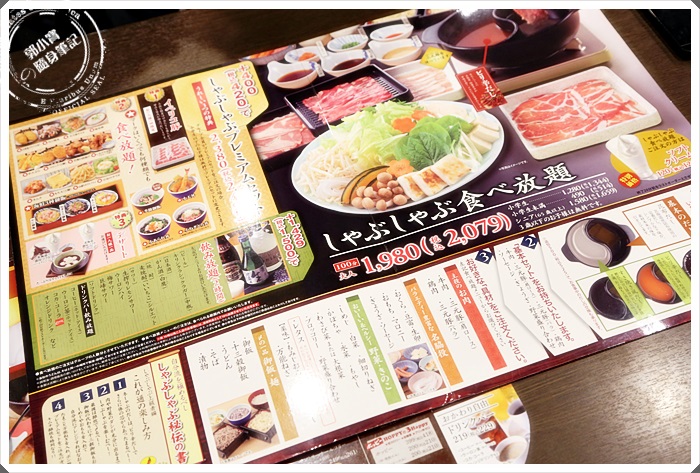 夢庵主要的餐點是以和食料理為主,但是在某一頁讓我們發現了有吃到飽的選項,而且還是火鍋耶,其實當天我們看下來好像只有我們兩個點火鍋吃到飽,其他人都是吃套餐居多,桌面上有火鍋的只有我們XD