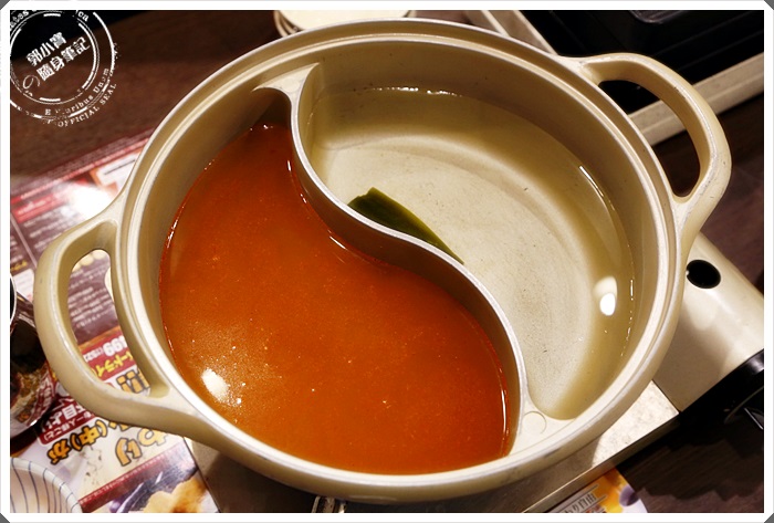 | 有三種湯頭可以選,我們選了昆布湯頭跟一點都不辣的麻辣鍋,雖然它上面明明是寫辛辣,鍋子似乎是用砂鍋。 |