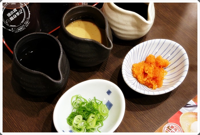 | 服務人員瞬間就送上來了很多調味品,日本人吃東西真的很厚工。 |