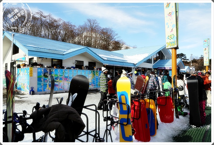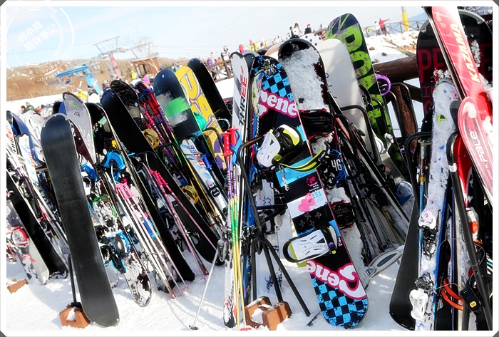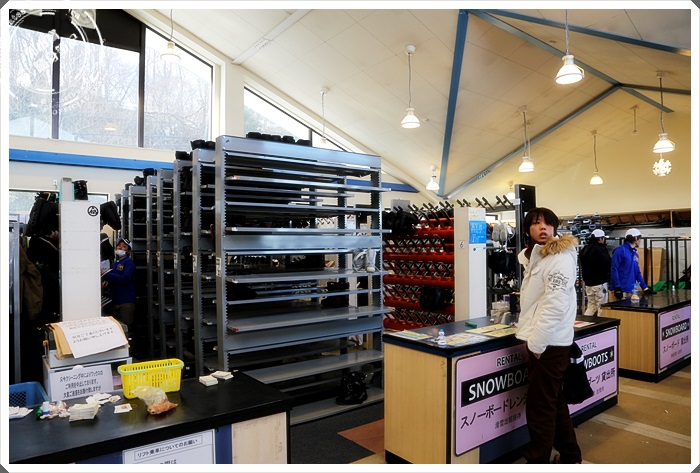 | 租借裝備的地方讓人看到眼花撩亂,光是滑雪板就一堆了,日本人似乎比較喜歡滑雪板的樣子,我在Yeti滑雪場看到的年輕人幾乎全部都是玩板子居多,之前去韓國滑雪場玩板子的人似乎沒有那麼多。 |