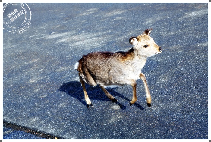 停好車子後看到馬路上有一頭野生小鹿悠閒的從我們面前經過,這應該是小鹿吧!!!