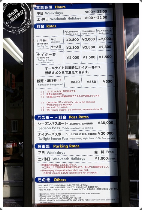 我們一行人有三個人都是買遊覽卷,就是門票而已,不能使用任何滑雪設施的部分。 |