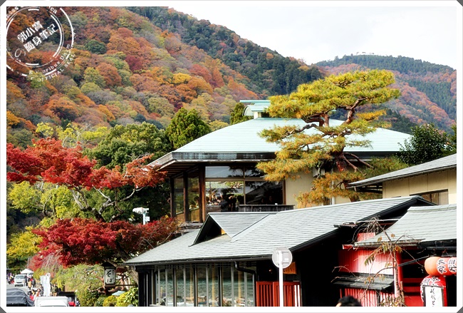 店內靠窗的地方就可以看到整個渡月橋跟滿山的楓葉景色。