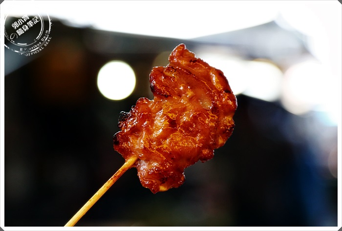 | 因為距離火車來的時間還將近有一個多小時,本來提議要去吃中餐,但是後來因為這邊攤販小吃都好特別,而且非常多樣化,我們就決定一攤接著一攤吃下去了,在市場內看到了唯一一家有賣熱食的,看起來像是烤雞肉串,我們就馬上出手了,一串10泰銖,還滿便宜的就下手7隻,剛好就一人一隻,吃起來還可以,就是很普通的雞肉串XD |
