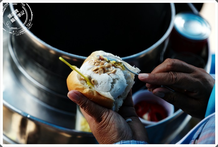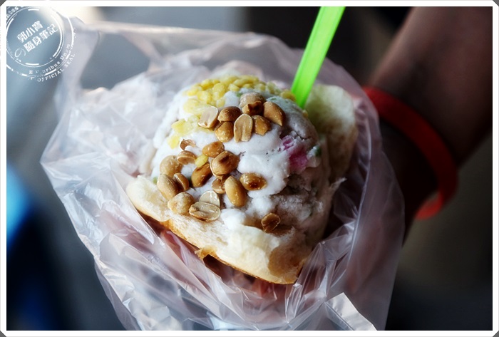 | 首先先上手的就是土司冰淇淋,這個還滿妙的也滿好吃的,把冰淇淋塗抹在像是餐包上面,然後灑上一些配料,就完成了! 大熱天吃冰淇淋真的超級療癒的,簡直無法停下來了,等到冰淇淋挖的比較小一點的時候,再把餐包合起來一口吃下,好過癮的美味啊!! |