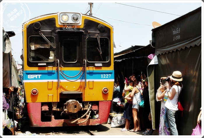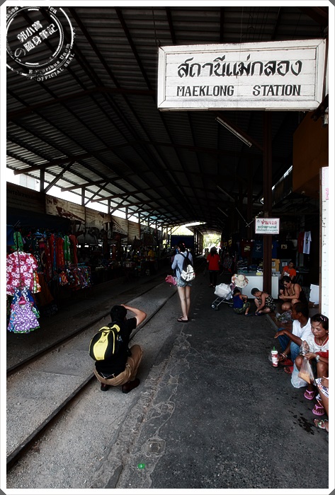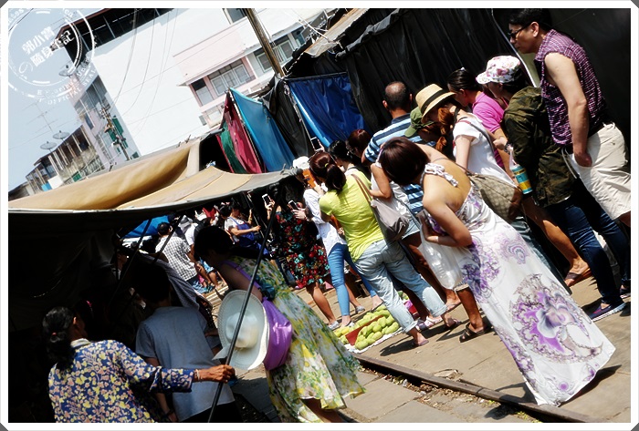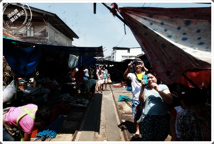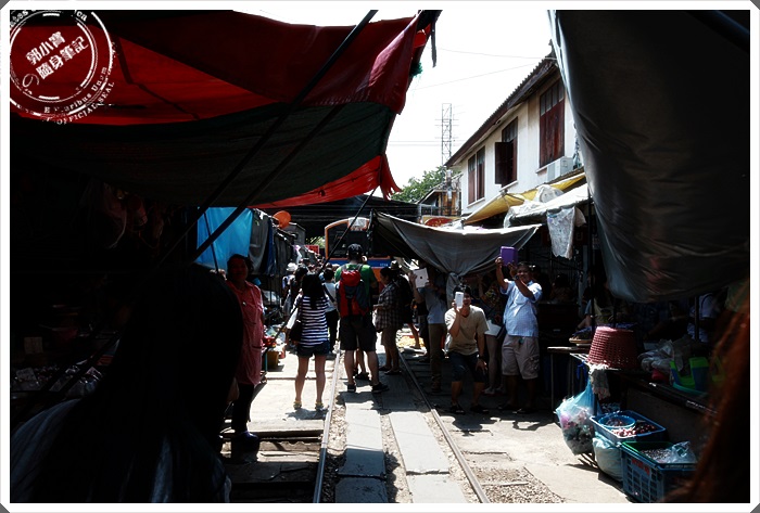 | 鐵軌兩邊已經開始有人群聚集了,拿著相機準備記錄這一切了,攤販們則是忙著將遮陽傘收起來,還不忘一直提醒遊客們要站近來一點。 |