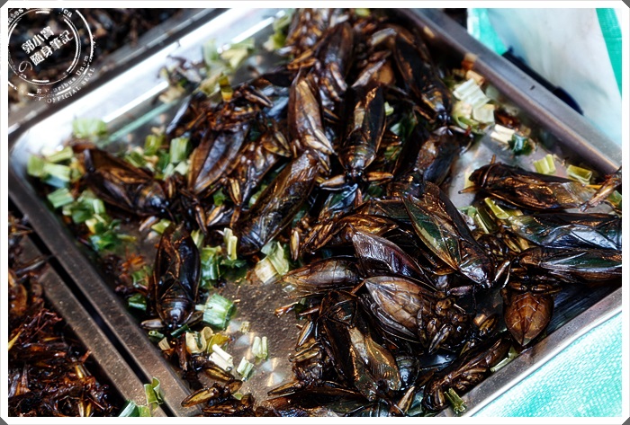 | 接下來就是恐怖食物的時間了,來到泰國當然會看到很多這些炸昆蟲的攤子,雖然我看很多泰國人都吃得很開心,但是我確是真的不趕入手,那種感覺大概就是日本人跟外國人看我們吃豬血糕跟臭豆腐的感覺吧XD |