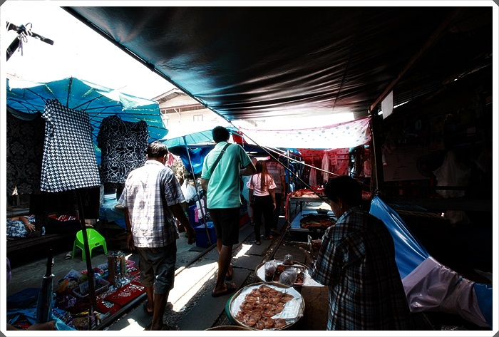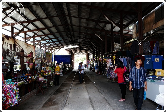 | 從曼谷出發後大約1個多小時就會到達安帕瓦的鐵道市場了,這邊本身就是一個鬧區了,接近中午時分到達真的是熱死我門了,這時候遊客都還在四處閒晃中。 |