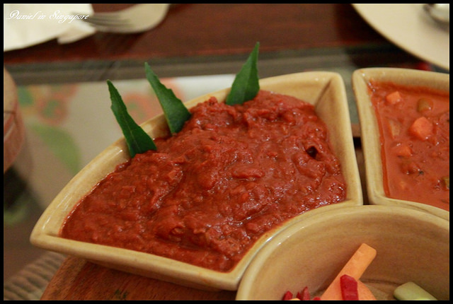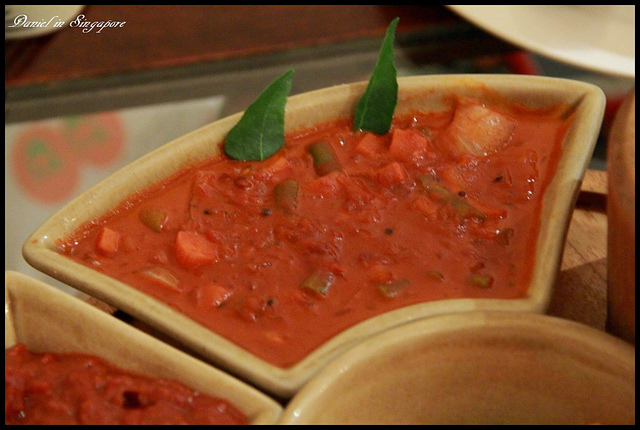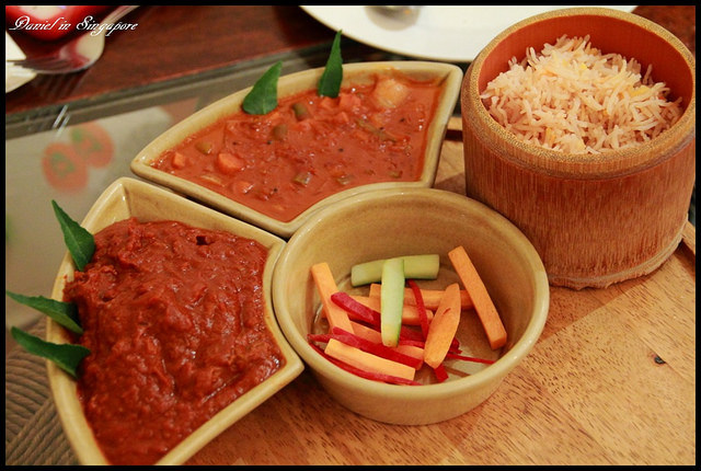 | 跟友人點了兩道咖哩,一道羊肉咖哩,另一道則是蔬菜咖哩,不過我們都不是專門能吃辣的人,因此只有選擇辣度3的程度小試身手而已,附上的肝黃瓜以及紅蘿蔔不知道是不是解辣用的,但是完全沒有甚麼解辣的作用, |