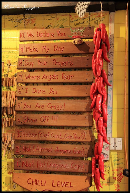 | 回到一樓之後才知道,原來Lagnaa的辣度有分成10個等級,端看大家能挑戰到甚麼程度的辣度,但是一般的日子卻只能吃到辣度6而已,因為辣度7~10店家要用特別的作法才有,所以店家才有滿月趴的活動,等於是一個月只有一天能挑戰辣度6~10的機會,但要挑戰也是要有前提,挑戰的資格就是先過了辣度6的關卡才能拿到更高級的辣度挑戰資格入場卷, |
