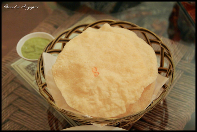 | 印度薄餅,這印度薄餅是店家附贈,薄餅超薄吃起來超酥脆,我還挺喜歡的,加上後面的綠色沾醬更有不一樣的風味,我喜歡, |
