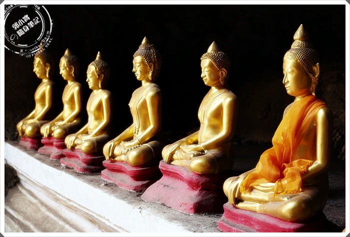 | 下到山底下就看了一整排的佛像,泰國宗教也是以佛為主的國家。 |