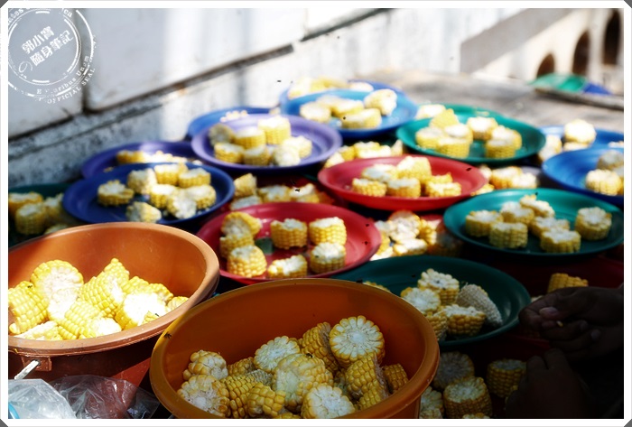 | 門口就有再販售玉米的攤販,玉米都是買給猴子吃的,這時候千萬別衝動買下去,因為YUSABAY的導遊會統一拿給大家餵猴子,別自己掏錢去買唷! 導遊會等到大家參觀完洞穴出來後跟攤販拿玉米讓大家餵養的。 |