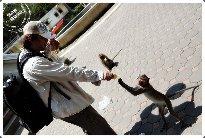 雖然一開始就被告知來這邊千萬別帶重要的東西在身上,任何食物也千萬別帶著,不然會被猴子搶劫,但是我心裡想在怎樣也沒我門高雄柴山的猴子多吧,後來事實證明,是不相上下XD |