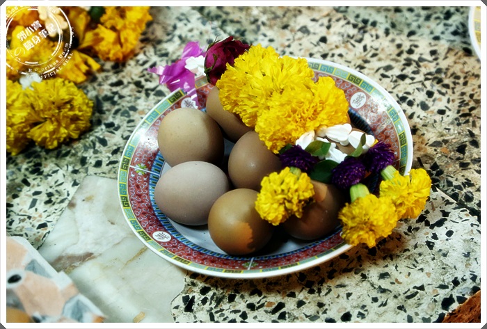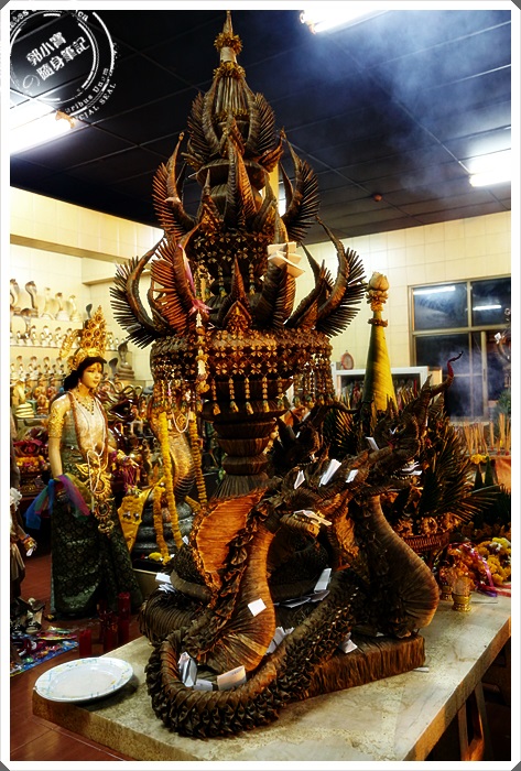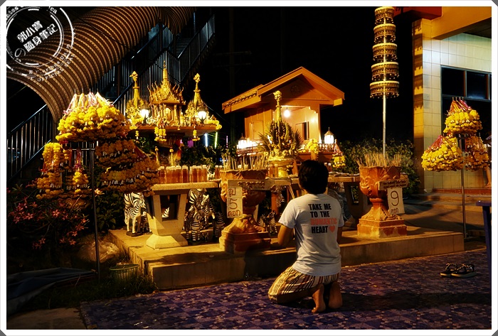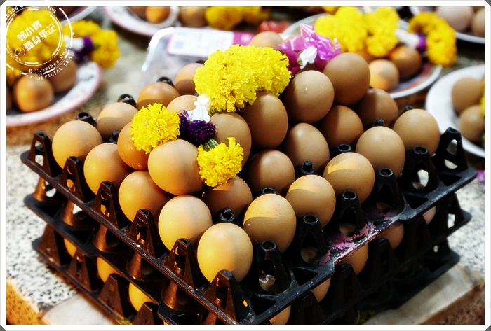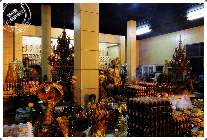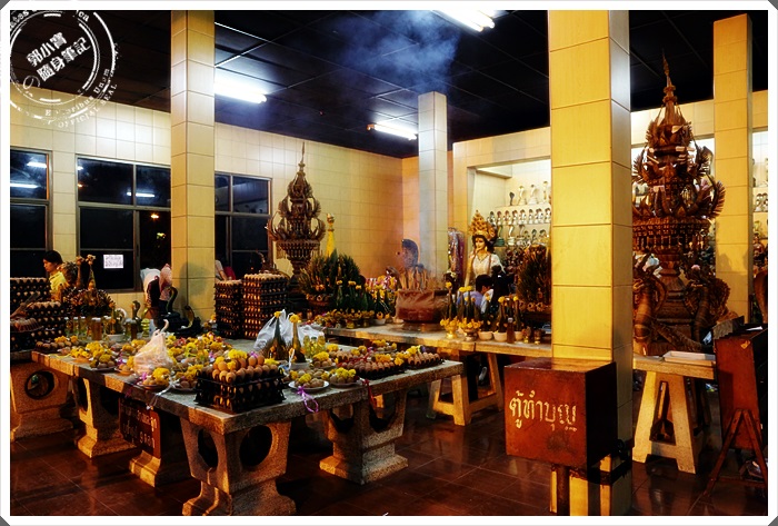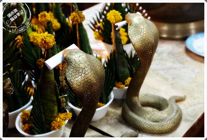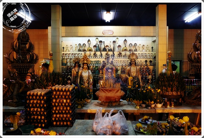 | 蛇廟其實並不是很大間,沒有非常具有泰式風格的建築,反而像是一間民房改建的,但是可以看到桌上的供品真的滿到一個不行,裡面也是超多信徒來來去去的。 |