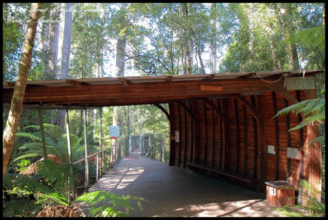 | 沿著步道前行之後沒多就便可抵達空中步道的入口,然而我覺得Tahune最為貼心的部分就是不管是空中步道還是林間小徑都設計成坡道,而且坡道不會很陡,而且沿途毫無階梯,主要是讓身障者也可以容易通行感受這林中的一切, |