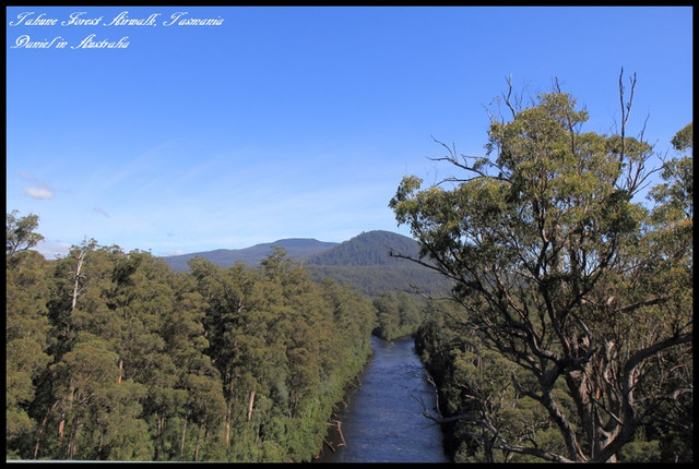 | Tahune是座自然的森林保護區,Huon River的支流貫穿其中,雖然這河景在環繞在茂密的樹林之中,但我們都認為這河景並沒有比早先看到的Huon River河景還美,但我還是覺得這座的森林跟潺潺的水流的景致,眼前儼然是個最貼近自然的美景, |