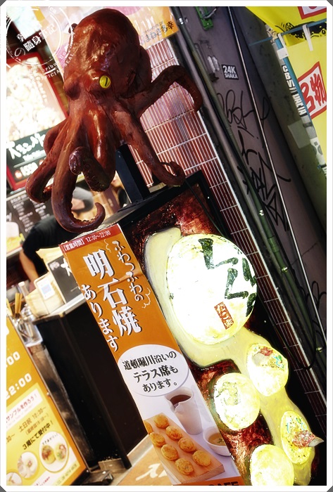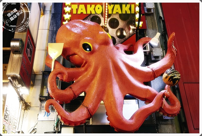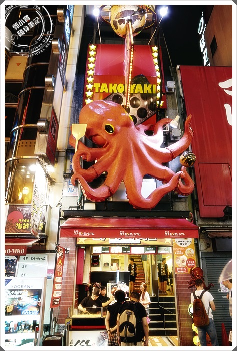 | 道頓堀上另一家是MO貴人觀望很久的店了,是一家外面有超大章魚的布置物非常顯眼,當晚吃完了餃子還覺得意猶未盡,所以隔了兩三家又進入了這一家章魚燒。 |