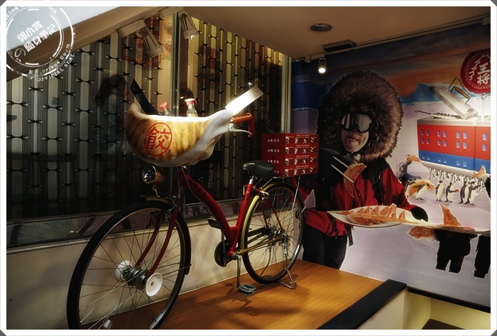 一樓幾乎沒有什麼座位,所以都是要往二樓移動,在樓梯的旁邊還有一台外送的腳踏車菜籃式改成煎餃造型的,相當的逗趣可愛。