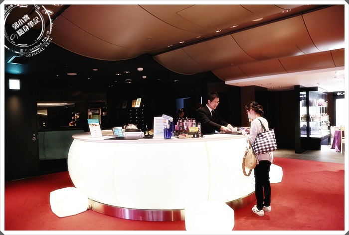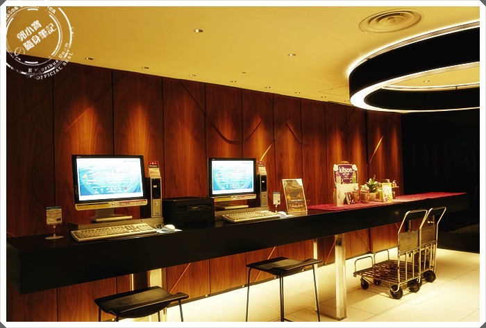 櫃台是白色圓形狀的造型,要是扣掉旁邊販售的商品店,整體是還滿符合時尚酒店的概念的,因為當初是在訂房網站訂十字Cross酒店的,所以記得一定要準備好列印出來的單據,因為當天就卡在找不到這張紙,她們有確認過護照有我這個房客,但是還是一定要看到列印的紙本。